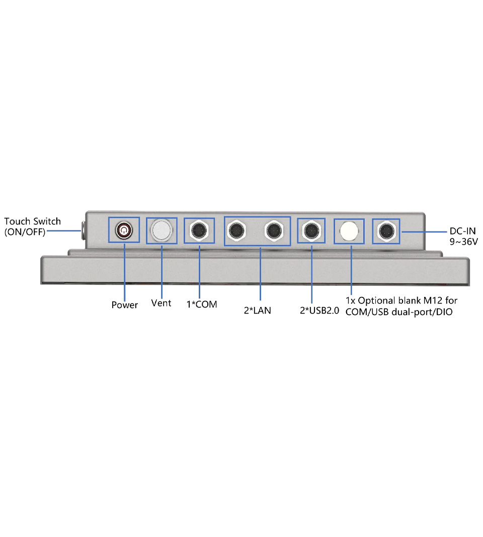 The fanless design eliminates moving parts and reduces the risk of failures caused by dust and moisture. All external connections are routed via industrial M12 connectors, ensuring stable communication even under vibration and frequent cleaning.
